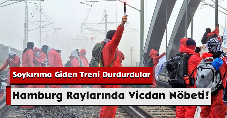 Almanya’nın Hamburg kentinde çevreci ve insan hakları savunucularından oluşan bir grup aktivist, Siyonist İsrail’e yapılan silah ihracatını protesto etmek için limandaki tren raylarına kendilerini zincirledi.