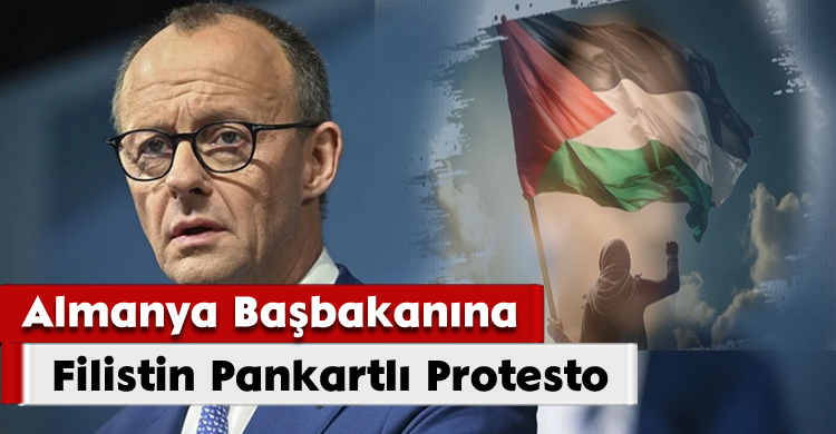 Almanya Başbakanı Friedrich Merz, bir seçim etkinliğinde "Yaşasın Filistin" pankartıyla protesto edilirken Gazze'de soykırım işleyen İsrail'e desteğini bir kez daha yineledi.