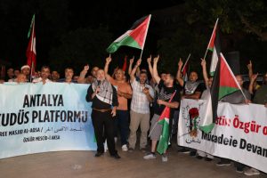 İsmail Cem Barış ve Dostluk Meydanı’nda bir araya gelen Filistin Platformu üyeleri, ellerinde Türk ve Filistin bayrağı taşıdı. Burada duanın ardından İsrail’in Gazze’deki saldırıları protesto edildi.