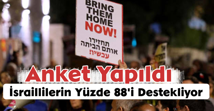 İsrail'in Maariv gazetesi tarafından yapılan bir kamuoyu yoklaması, Gazze'deki esirlerin iadesi için yapılacak bir anlaşmanın İsraillilerin yüzde 88'i tarafından desteklendiğini ortaya koydu.