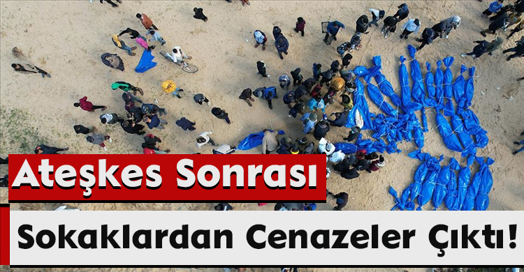 Gazze’de ateşkesin ardından korkunç tablo gün yüzüne çıktı. Gazze Sivil Savunma ekipleri, sokaklardan ve enkaz altından onlarca Filistinlinin cenazesini çıkardı.