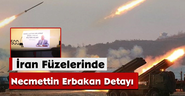 İran’ın 88’inci dalga saldırısında İsrail'e fırlatılan bir füze üzerine merhum Erbakan’ın fotoğrafı ve sözlerinin yerleştirilmesi dikkat çekti.